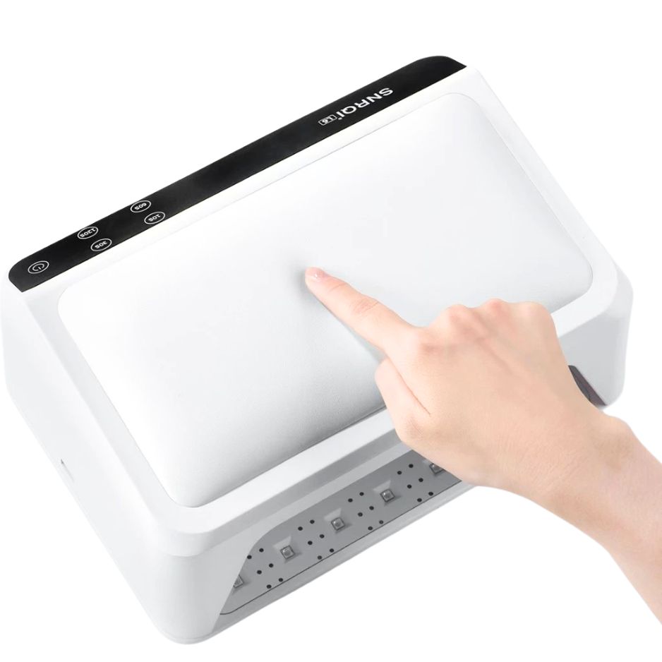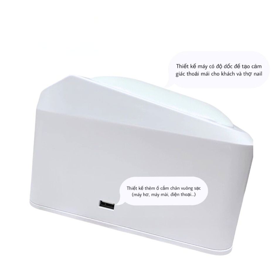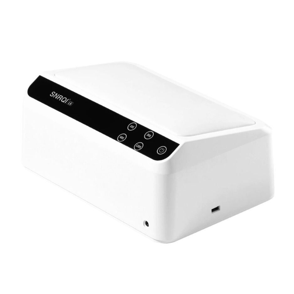Máy hơ gel SNRQI L6 là phiên bản nâng cấp hiện đại, được thiết kế kết hợp gối kê tay tiện lợi, giúp khách hàng thoải mái hơn trong quá trình làm móng, đặc biệt khi ngồi lâu.