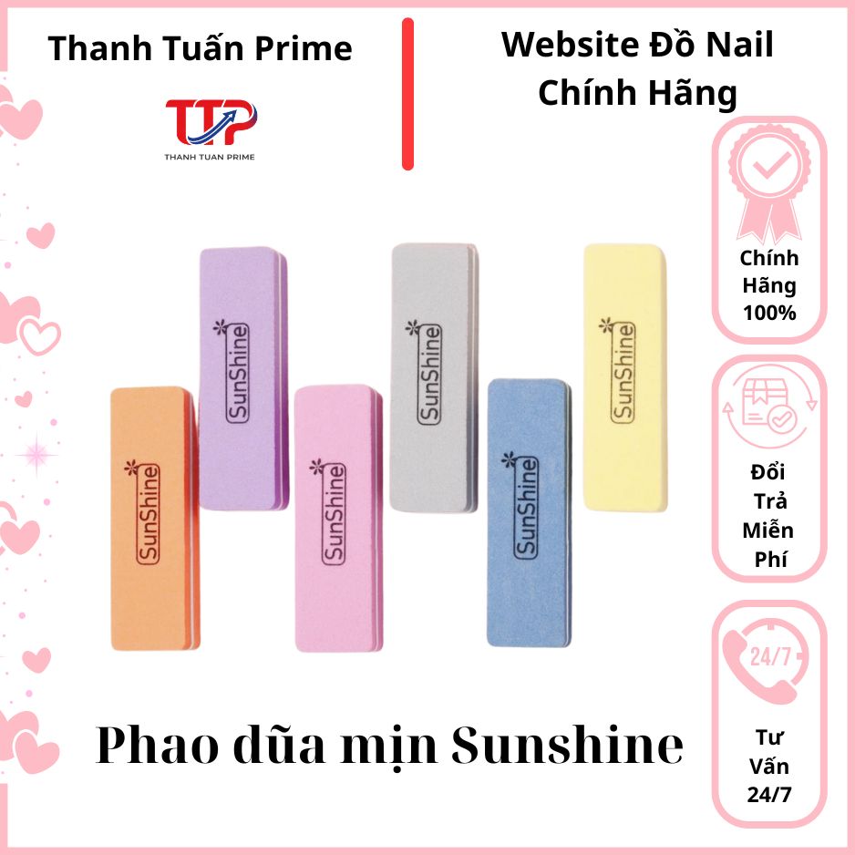 Phao dũa mịn Sunshine là dụng cụ không thể thiếu trong quy trình làm nail chuyên nghiệp, giúp làm mịn bề mặt móng trước và sau khi sơn, tạo nền hoàn hảo để lớp gel bám chắc và lên màu đẹp hơn.