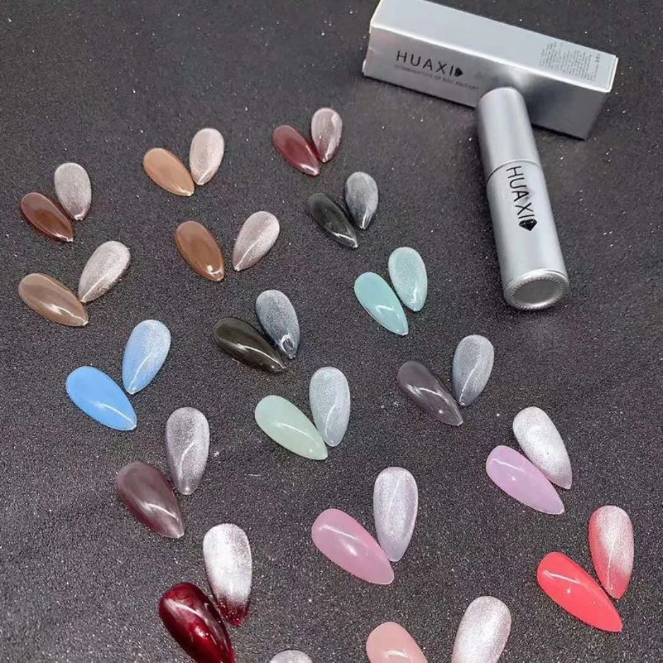 Sơn gel mắt mèo Huaxi là dòng gel cao cấp với hiệu ứng ánh kim đa chiều, kết hợp hạt nhũ siêu mịn tạo nên hiệu ứng “mắt mèo” sắc nét và cuốn hút. Khi sử dụng nam châm, lớp nhũ sẽ dịch chuyển tạo vệt sáng nổi bật, mang lại chiều sâu và độ sang trọng cho bộ nail.