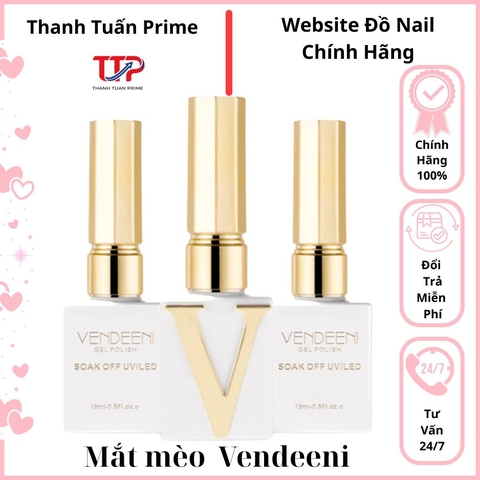 Sơn gel mắt mèo kim cương Vendeeni ánh trăng, ánh nước là dòng sơn cao cấp với hiệu ứng ánh sáng đa chiều, tạo vệt sáng “mắt mèo” kết hợp nhũ kim cương lấp lánh. Khi lên móng, màu trắng ánh xà cừ mang lại cảm giác nhẹ nhàng nhưng vẫn cực kỳ sang trọng và nổi bật.