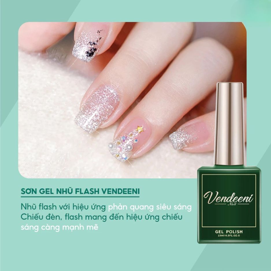 Sơn gel nhũ flash Vendeeni là dòng sơn chuyên hiệu ứng ánh kim tuyến phản quang, tạo độ lấp lánh nổi bật khi gặp ánh sáng mạnh hoặc đèn flash. Khi ở điều kiện bình thường, màu nhũ vẫn đẹp nhẹ nhàng, nhưng khi bật flash sẽ bừng sáng cực kỳ thu hút.