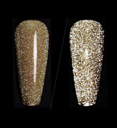Sơn gel nhũ flash Vendeeni vàng – bạc là dòng sơn hiệu ứng cao cấp với hạt nhũ dày, mịn, tạo độ lấp lánh sang trọng ngay cả trong điều kiện ánh sáng thường. Đặc biệt khi gặp ánh đèn hoặc flash, bề mặt móng sẽ phản quang cực mạnh, tạo hiệu ứng “bling bling” nổi bật.